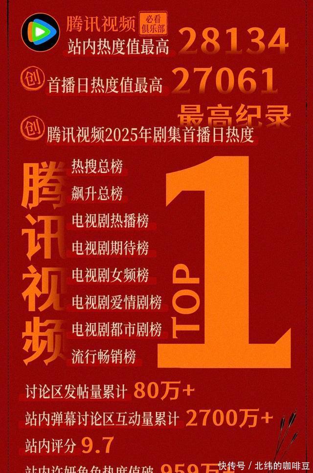 这部剧不仅创下站内热度首日破27000、次日达28133的纪录,更在短短几天内突破29000大关,成为鹅厂连扑十几部剧中首部热度突破29000的剧集。